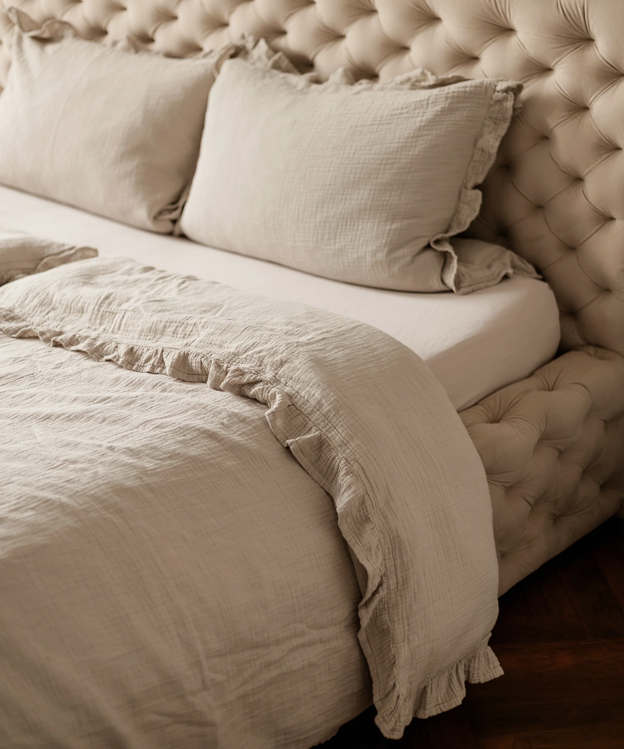 Gerüschte Musselin Einzelbettwäsche Beige | Haven